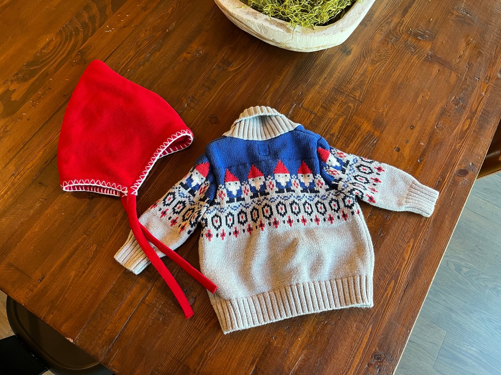 Baby Gap Hanna Andersson Gnome Cardigan Sweater & Hat 3-6 Months. Both in excellent condition.