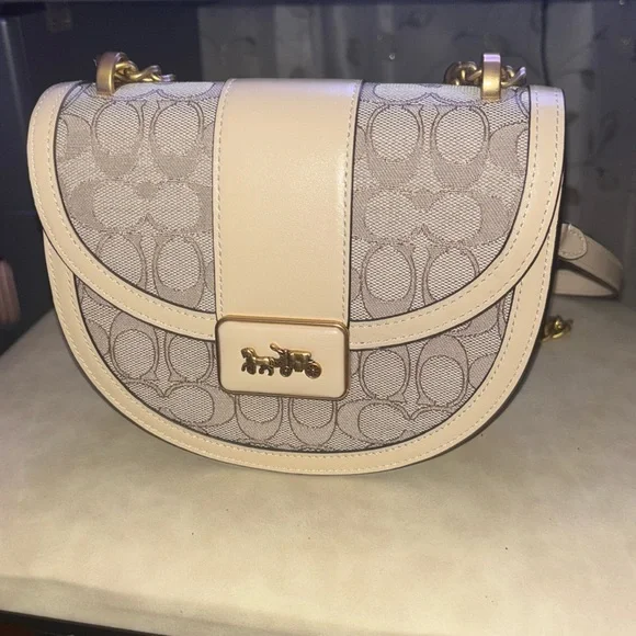 *Brand new, without tags* •This was a limited edition bag, and is no longer Available for purchase on COACH, sold out fast. •Color: Brass/Stone Ivory •The strap can be used as a shoulder strap when doubled layered or a full crossbody strap as well. •It is pretty spacious inside and does have a slim pocket inside** Feel free to ask questions or make me an offer! :) **