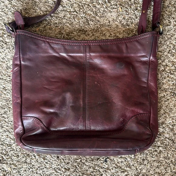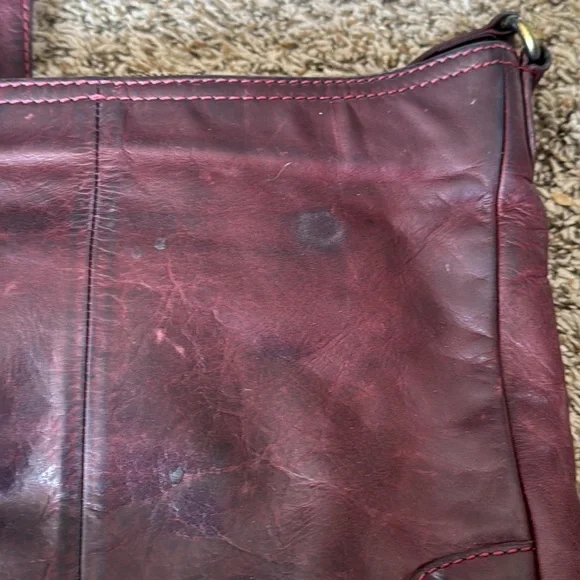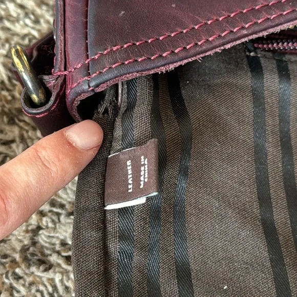 This is in good used condition, but does show signs of wear. There’s some discoloration on the bag, which is normal for leather bags. There’s also some fraying on the handles and a small tear in the liner, all of which I tried to picture.I’m other than those, this bag is still super cute and has lots of life left in it!