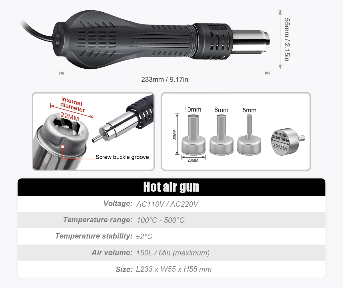Ceramic Heater Material:The station's ceramic heater material ensures durability and longevity, reducing the need for frequent replacements.