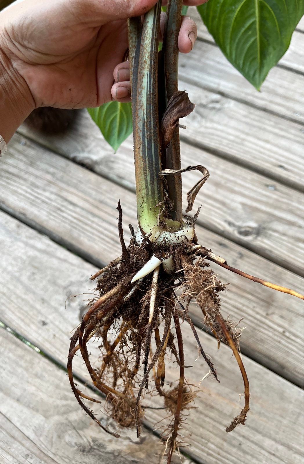 Caladium lindenii 'Magnificum' is a cultivar of the species Caladium lindenii. It is differentiated from this species by having more pronounced veins on the leaves that are a creamy white coloration. The cultivar grows from a rhizome and is commonly grown as an ornamental plant.