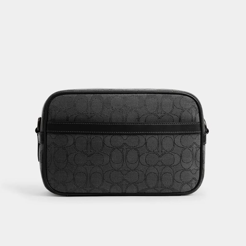 “Our Theo is a modern classic made for days on the go. Inspired by archival camera bags, this compact design has room for all the essentials. Crafted of our lightweight Signature jacquard and refined leather, the versatile style has convenient outside pockets and a detachable webbing strap for hands-free wear.