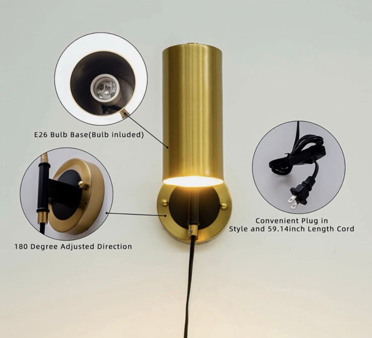 MODERN, STYLISH DESIGN】Gold wall light- Iron crafted with mid century brushed brass plated shade, simple and fashionable, a great contemporary wall lighting choice for bedroom, bedside, reading room and living room.