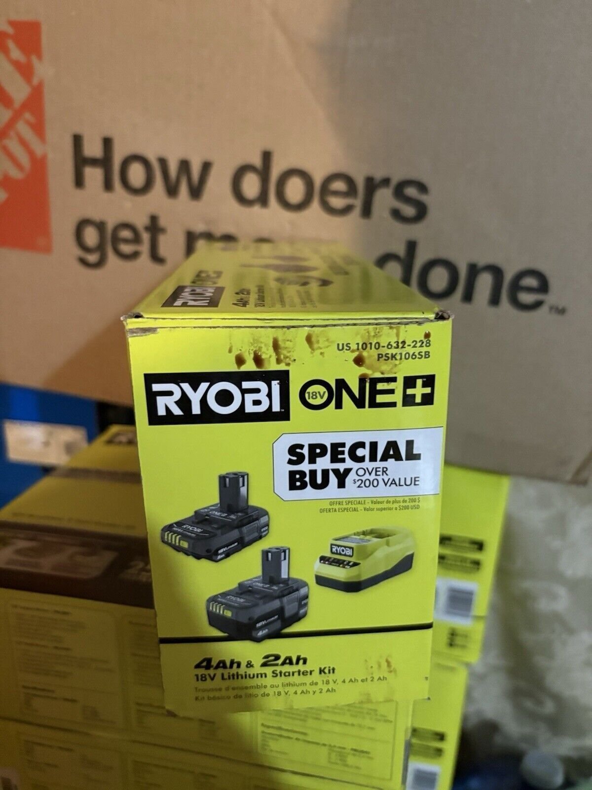 NEW Ryobi One+ 18V Lithium-Ion Starter Kit w/ 2.0Ah & 4.0Ah Battery & Charger