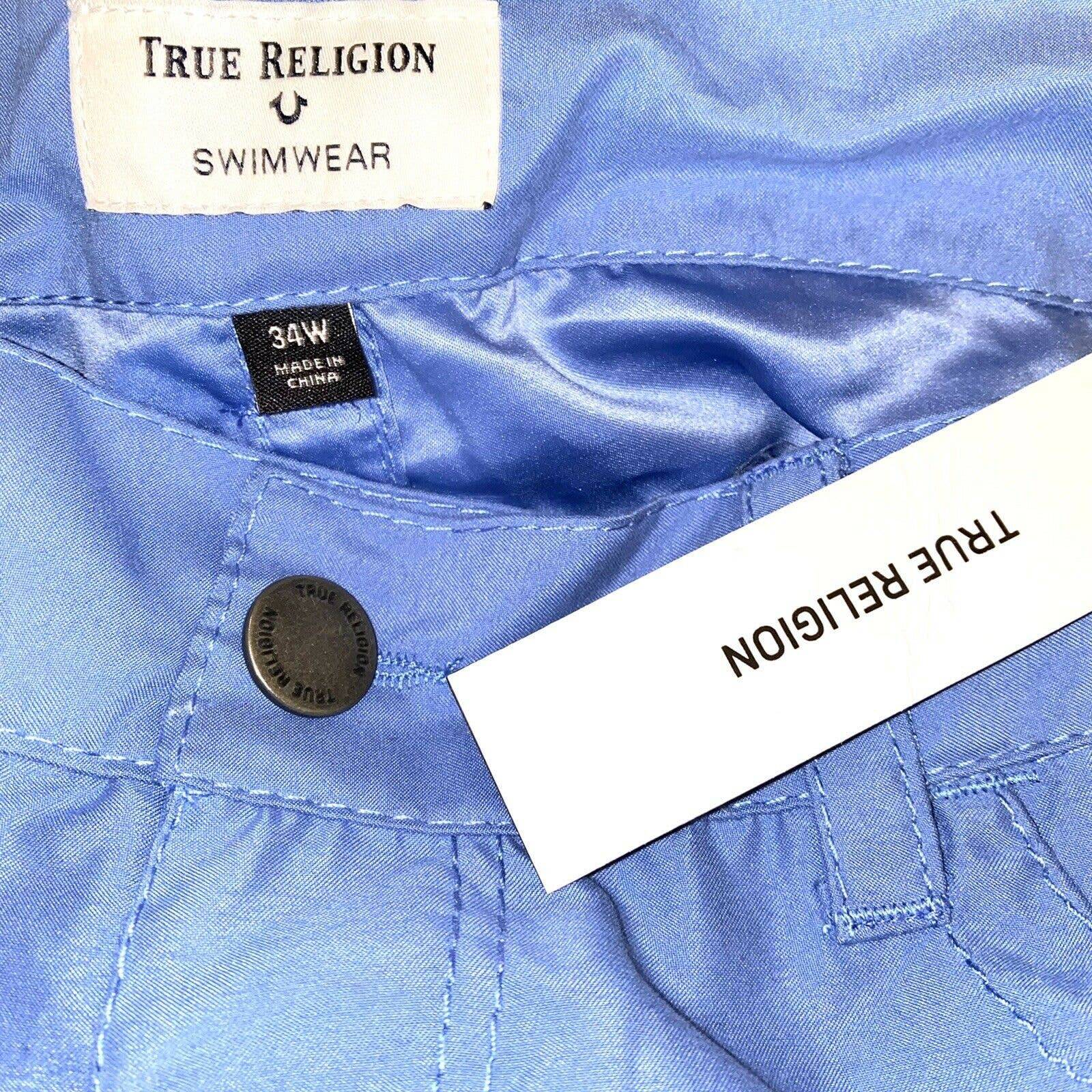 NWT True Religion Men's 34 w Flap Pocket Boardshorts NEW $99 Blue Flat Front.