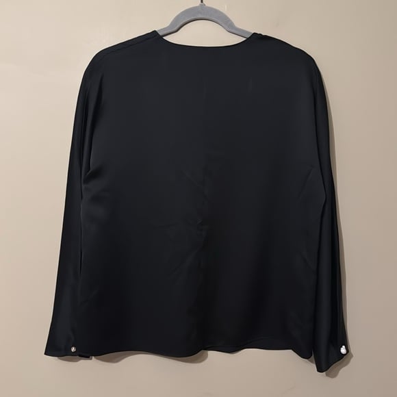 NWT- Tiny hole (less thank 1/2”) near seam where security tag was removed (last pic). Styled with a deep V-neck, our luxe silk satin blouse is designed with a hidden placket of agoya shell buttons, accented with a single imitation freshwater pearl at the top.
