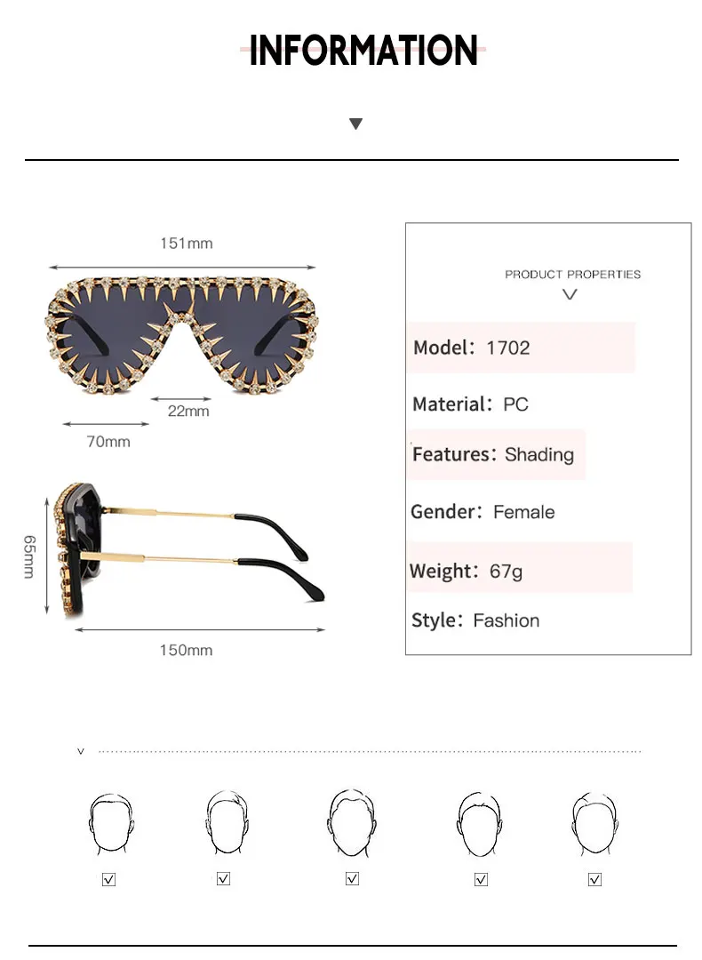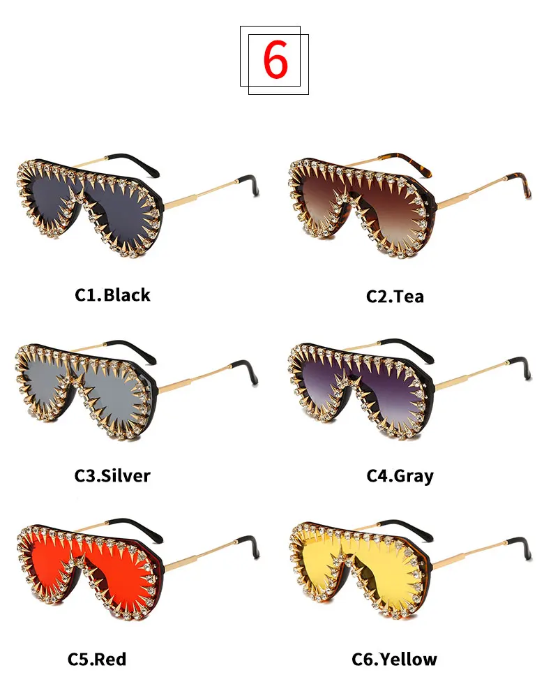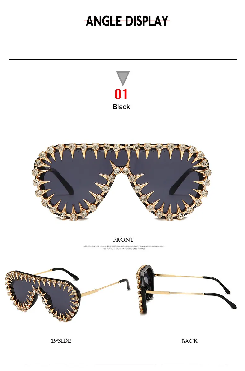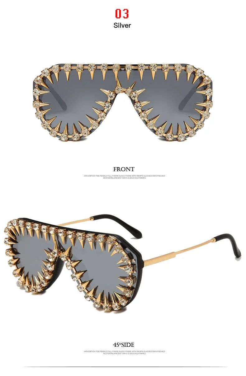 Icguaa Steampunk Nail Diamond Oversized Sunglasses For Women Luxury