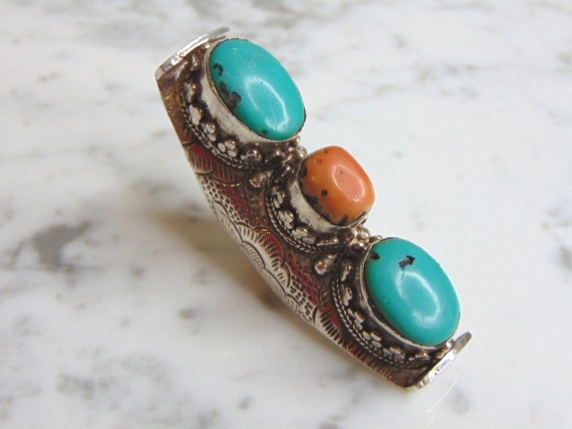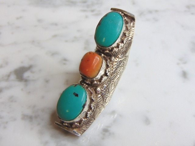 FOR SALE IS THIS WONDERFUL WOMENS VINTAGE ESTATE STERLING SILVER TURQUOISE STONE RING. NOT SURE IF STONES ARE REAL OR MAN MADE. THE RING WEIGHS 43.6g, AND IS A SIZE 7. RING MEASURES 2 5/8" LONG BY 3/4" WIDE. ANY QUESTIONS PLEASE DO NOT HESITATE TO ASK. BE SURE TO CHECK OUT SOME OF MY OTHER GREAT ITEMS UP FOR SALE. THANK YOU.