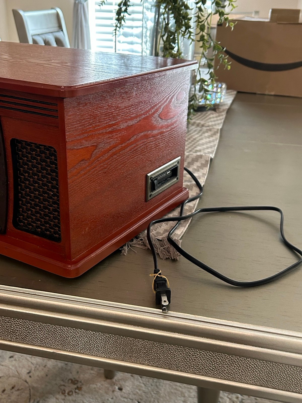I’ve had this record player for about five years but I had decided it was time to let go of it. I’ve had some great memories with it but I don’t want it to sit as the way it has been for some time. It is in great condition, but there are a couple of scuffs on the top of the lid, as my ex often used it as a table-_-