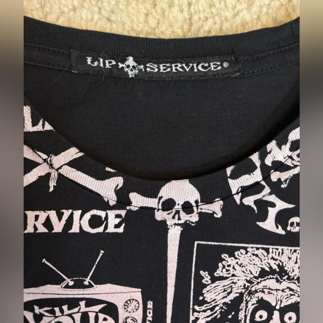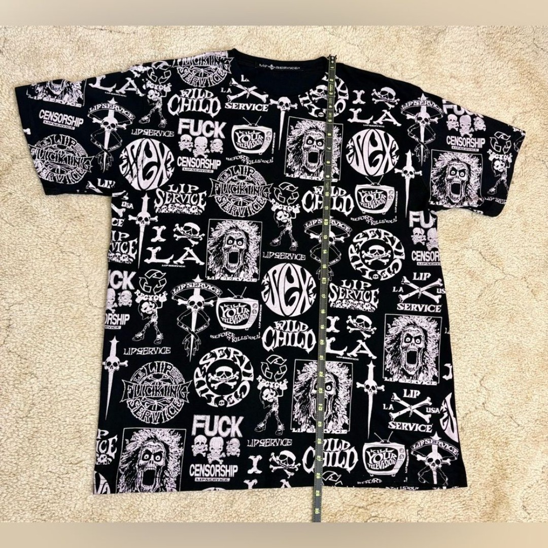 Y2K Vintage Lip Service Logo Print Mens T-Shirt SZ L